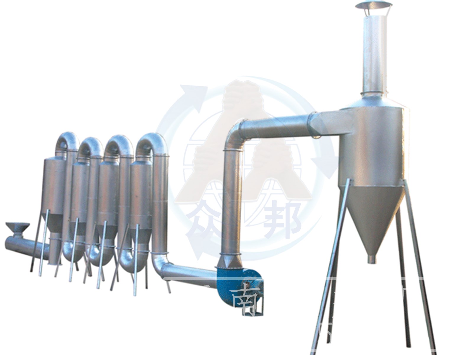 氣流式烘干機(jī):采用自制可燃?xì)鉃榧訜嵩础⒑娓蔀閮刹糠旨矗簼L筒部、蛇形管部。滾筒部分:內(nèi)滾筒、外保溫兩層。內(nèi)滾筒內(nèi)裝有三頭內(nèi)螺旋片,可使烘干物料均勻走動稱為炒制加熱,蛇形管部二次利用熱源,采用引風(fēng)機(jī)...